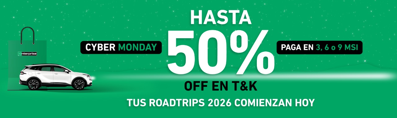 Preparate para viajar cybermonday 50 descuento road trips 2026 meses sin intereses con Enterprise Rent-A-Car México